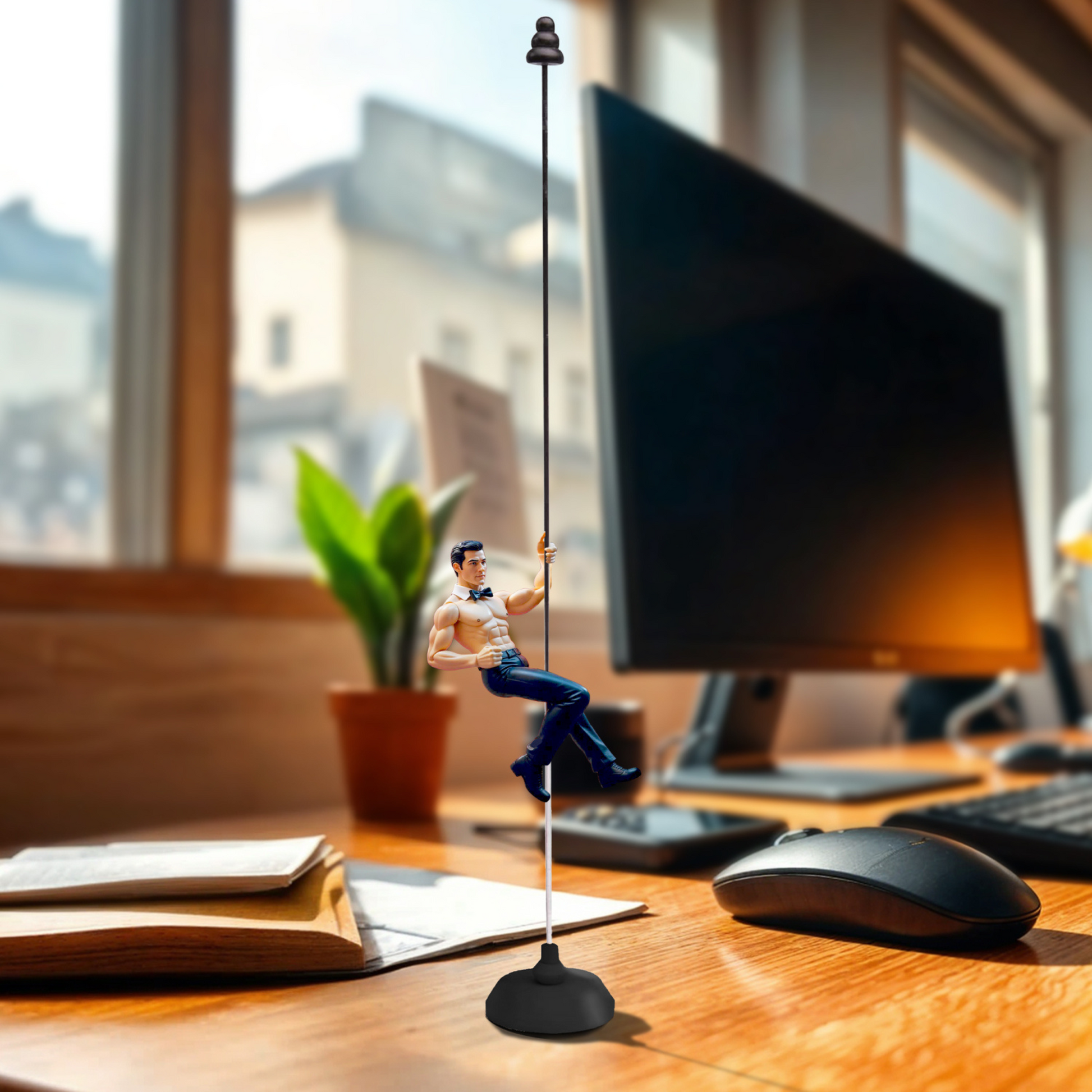 Meet your new favorite distraction—a playful take on the retro woodpecker toy, now starring three flirty shirtless hunks: a fireman, a cowboy, and a butler. These swoon-worthy studs twirl down their poles with charm and a wink, bringing just the right amount of sass and fun to your workspace or bookshelf. Whether you're working or just need a little eye candy, these guys are here to entertain.